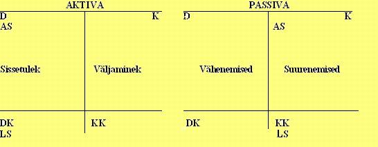 Kontodel on kaks poolt: vasak pool - deebet (D) ja parem pool - kreedit (K ). Nende tähendus aktivas ja passivas on erinev.