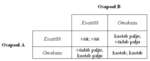 igas lahtris on näidatud neljale erinevale strateegiate kombinatsioonile