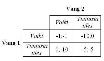 - Vang 1 tunnistab üles ja vang 2 vaikib või vastupidi